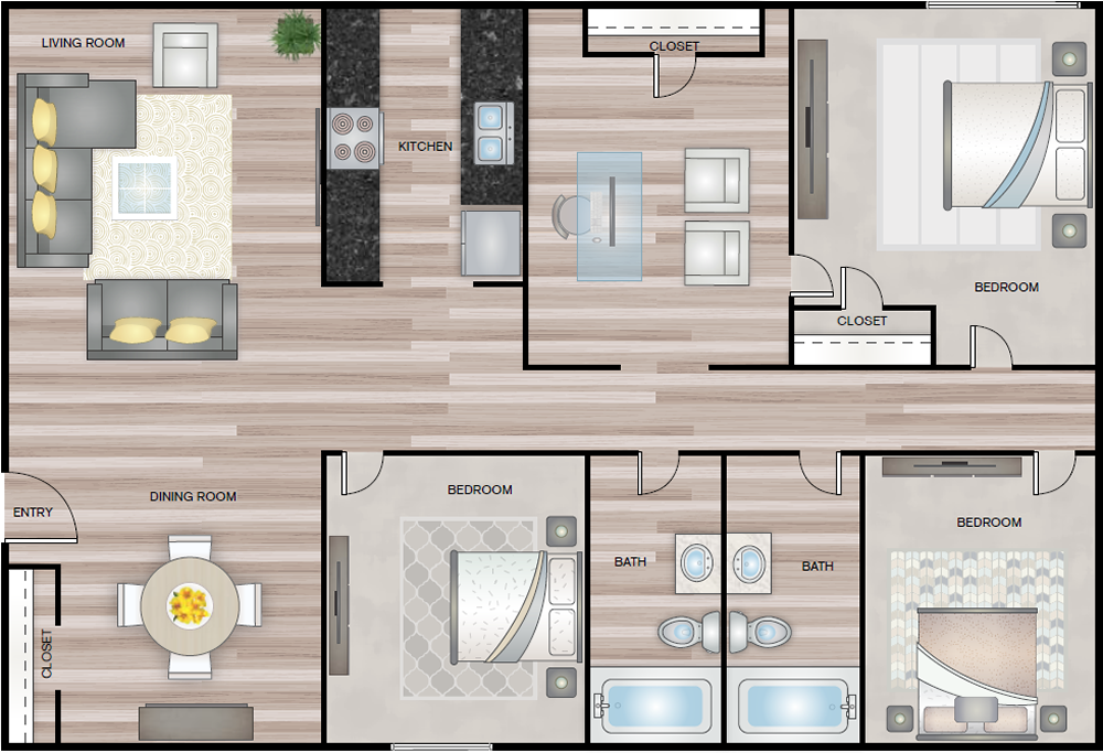 Our spacious apartments feature modern high-grade finishes such as faux wood flooring, ceiling fans, spacious floorplans and much more - all at a great cost. Stop by and meet our professional leasing team members who are eager to show you around.